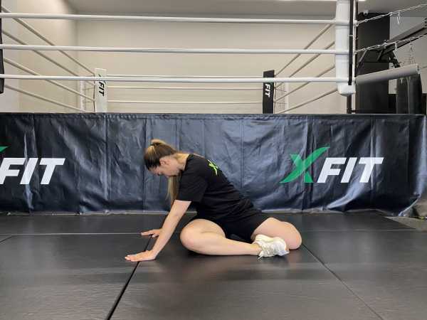 Это упражнение сложное, если у вас большой лишний вес, вы недавно занимаетесь или ощущаете сильный дискомфорт в коленях, пропустите это упражнение. Исходное положение стоя на коленях, колени на ширине таза. Опустите таз вправо от стоп и сядьте на пол, вернитесь в исходное положение и опуститесь в другую сторону. Выполните 8-10 повторений.